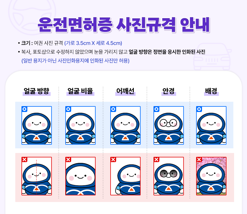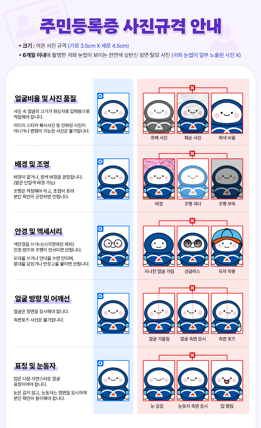 사용되는 사진의 규격과 기준이 타 신분증에 비해