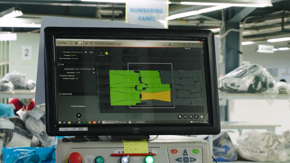 절단 공정에서는 원단이 자동으로 펼쳐져
