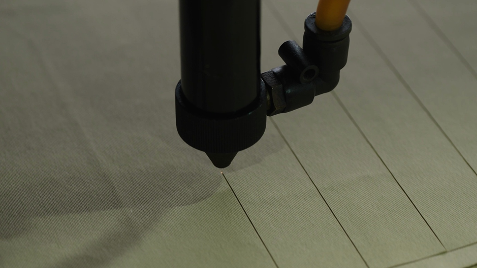레이저를 이용해 원단을 자르는 단계입니다.