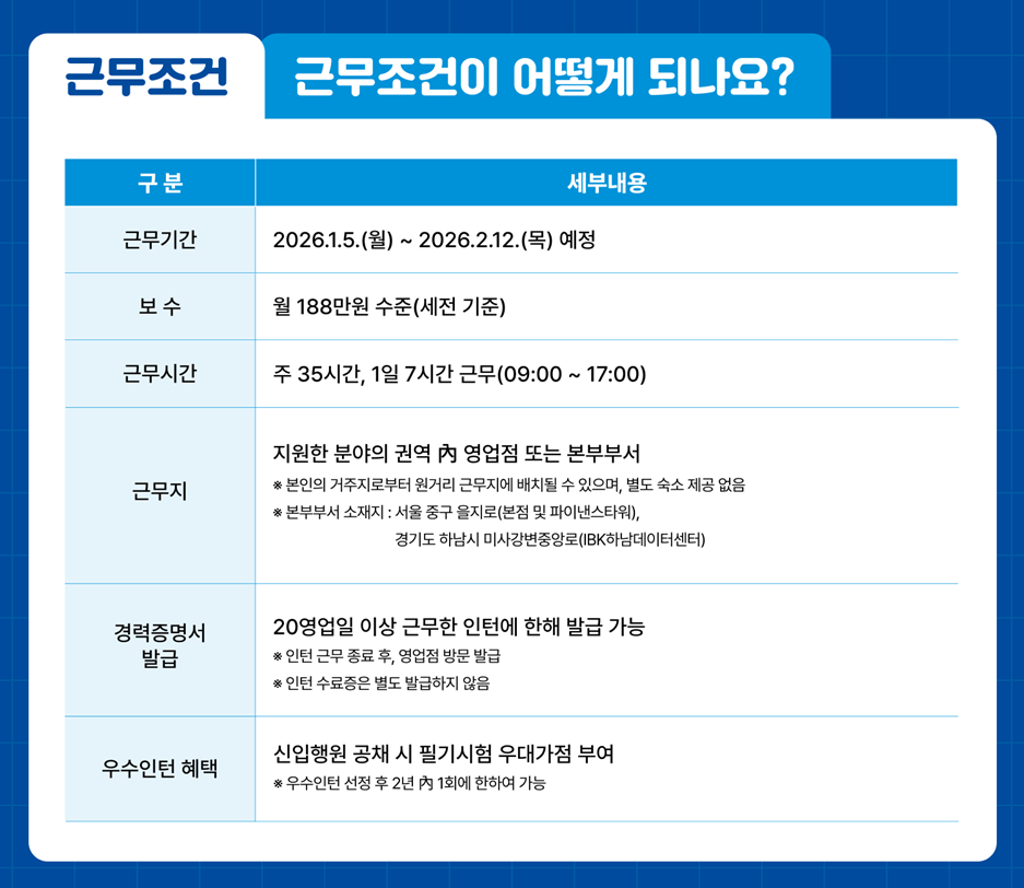 2026년 동계 IBK기업은행 체험형 청년인턴 채용공고 더 알아보기