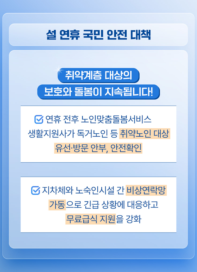 - 연휴 전후 노인맞춤돌봄서비스