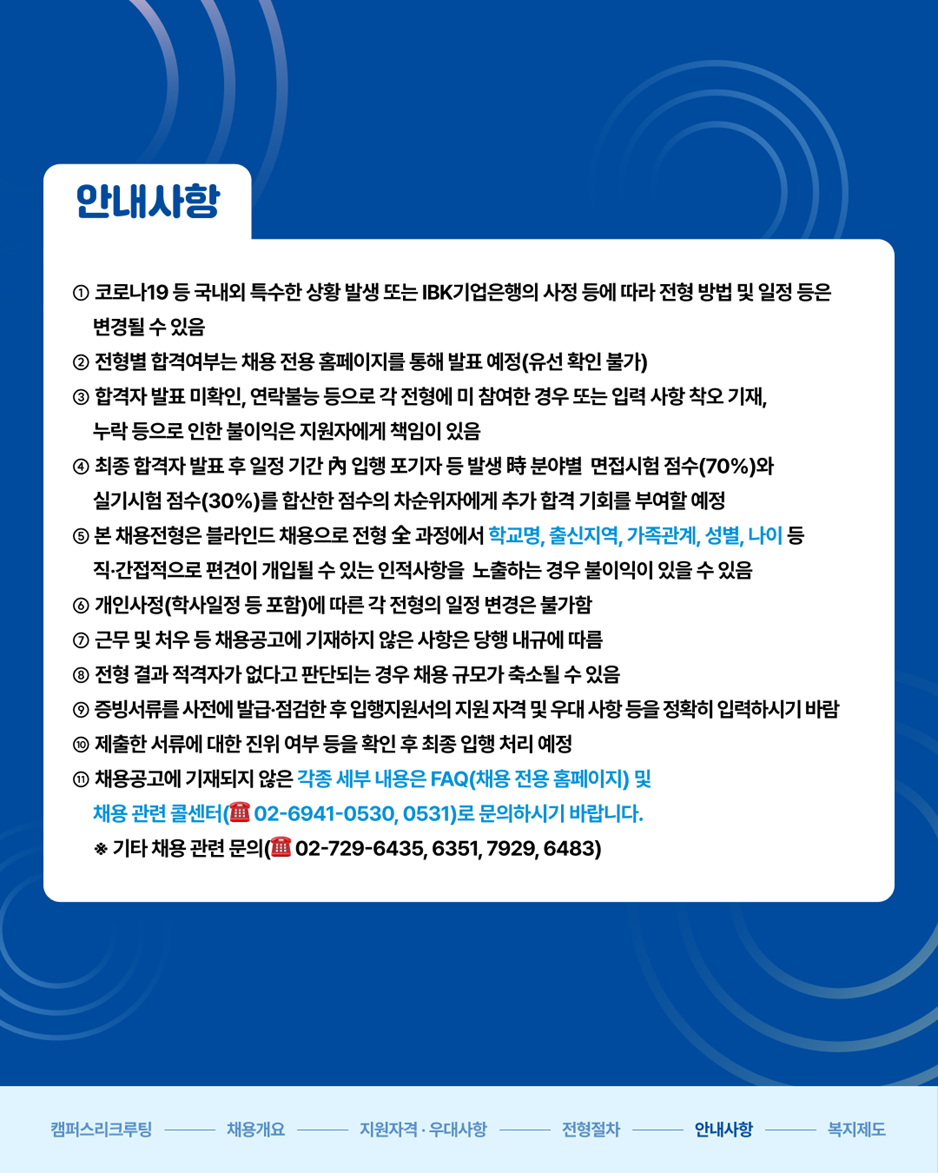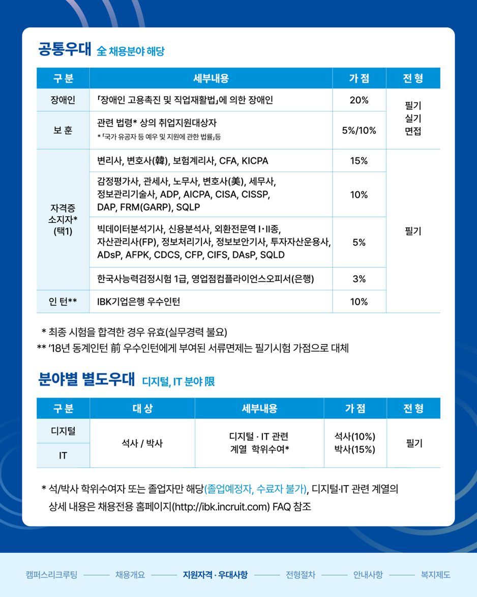 ※ 자세한 내용은 IBK기업은행 채용 전용 홈페이지